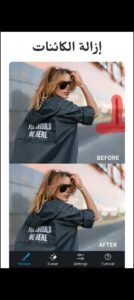 - يضم التطبيق الازالة والتي توفر لك التخلص من أي شيء في الصورة بضغطة واحدة.